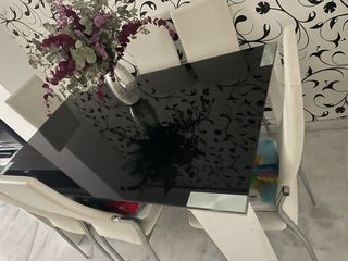 Mesa cristal negra y 6 sillas blancas