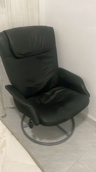 Cómodo sillón de lectura en color negro, perfecto para relajarse. - Diseño moderno y elegante. - Base giratoria. - Incluye reposapiés a juego.
