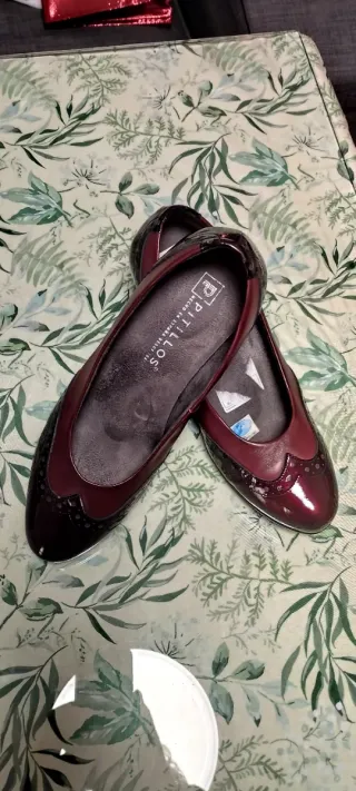 Elegantes zapatos de tacón con un diseño bicolor. - Combinación de color rojo burdeos y negro. - Detalle de picado en la puntera.