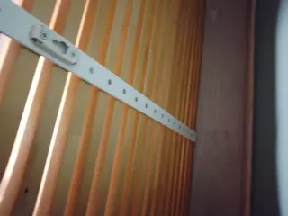 Cabecero de diseño moderno, ideal para cualquier dormitorio. - Estructura de madera con detalles en plástico. - Cabecero tiene hecho los cortes de los enchufes. - Solo tengo dos baldas , una de ellas está con manchas del uso.