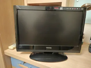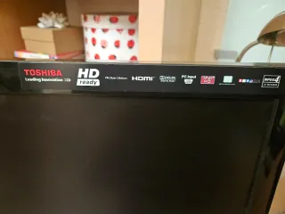 Pantalla de televisión Toshiba en color negro. - Modelo HD. - Conexión HDMI. - Incluye mando original