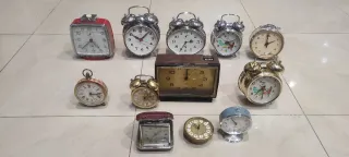 Conjunto de despertadores mecánicos de cuerda. La mitad funciona y otros tiene que repasarlos pero tienen arreglo todos los cristales bien y las cuerdas bien menos uno - Varios modelos y diseños. - Ideales para coleccionistas o decoración vintage.
