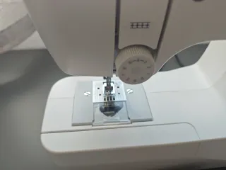 Máquina de coser Singer M1155 en color blanco. Incluye pedal. - Diseño compacto y moderno. - Ideal para trabajos de costura básicos y creativos. - Fácil de usar.