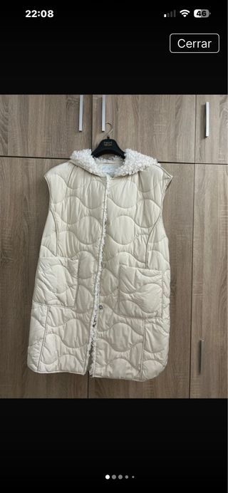 Chaquetón largo sin mangas con capucha, ideal para añadir una capa extra de abrigo. - Diseño acolchado con ondas. - Forro interior de pelo suave. - Cierre de botones. - Bolsillos frontales.