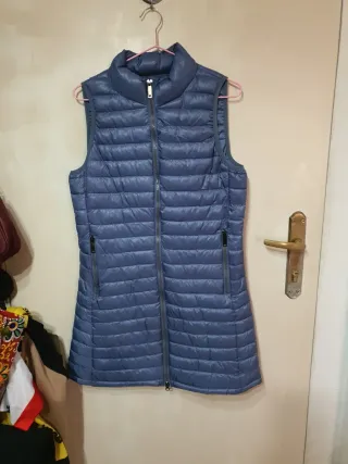 Chaleco acolchado de corte moderno y ligero. - Cierre frontal con cremallera. - Dos bolsillos laterales con cremallera. - Cuello alto.