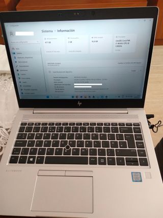 HP EliteBook 840 G5 Silver Notebook 35.6 cm (14") 1920 x 1080 pixels 8th Gen Intel® Core™ i7 i7-8650U 16 GB DDR4-SDRAM 512 GB SSD Windows 11 Pro 64 bits. Tarjeta gráfica 2Gb. Prácticamente nuevo. Apenas ha tenido uso. Teclado en inglés. Windows 11 Pro en Inglés y Español. Teclado retroiluminado. Tiene lector de tarjetas, webcam, wifi y ratón incorporado en el teclado. Seguridad: 1 lector de tarjetas inteligentes (SmartCard) como el DNI y lector de huellas. Conexiones: 1 USB Tipo C, 2 USB 3.1, 1 HDMI, 1 RJ-45, 1 lector de tarjetas SIM, 1 conector de puerto y 1 combo de auriculares/micrófono.