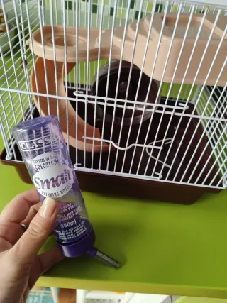 Estupenda jaula para hámster con muy poco uso, solo 2 semanas. - Incluye accesorios para el entretenimiento y bebedero. - Diseño espacioso y seguro. En la última foto puedes ver una pequeña rotura en el fijador de la jaula que no afecta a su cierre ya que tiene otra sujeción.
