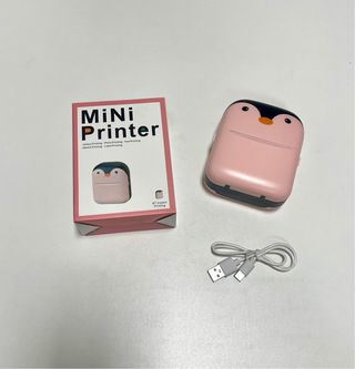 Impresora térmica con forma de pingüino rosa, súper cuqui y práctica ✨ Funciona por Bluetooth (se conecta al móvil fácilmente). No usa tinta ❌🖋️ imprime con papel térmico. Incluye: ✔️ Cable de carga tipo C ✔️ 1 rollo de papel térmico ✔️ Impresora en perfecto estado Ideal para imprimir fotos, notas, listas, etiquetas, dibujos, etc. Tamaño mini, ligera y fácil de llevar 🎒 Se vende tal cual se ve en las fotos. 📦 Envío rápido 💬 Acepto packs y ofertas razonables