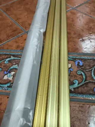 Conjunto de barras metálicas para colgar ropa en armarios. Su acabado dorado añade un toque elegante. 3,90 metros cada una - Material: Metal - Color: Dorado y Plateado