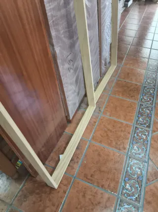 Se venden restos de dinteles y jambas de madera maciza. Piezas ideales para proyectos de carpintería o restauración. - Madera maciza de calidad. - Variedad de piezas y tamaños.