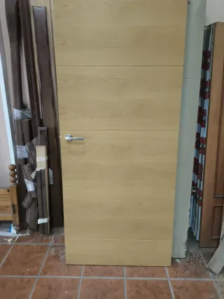 Puerta de interior con un diseño moderno de cinco rayas horizontales. El acabado en haya natural le da un toque cálido y elegante. 2030 x 825 x 35 Manillas y Bisagras incluidas - Diseño de 5 rayas. - Acabado en Haya Natural.