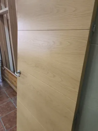 Conjunto de puertas o portones de seguridad de madera maciza en madera virgen sin barnizar. 90€ por cada una. La que está desembalada incluye mecanismo de cierre y mecanizado. Las demás están embaladas sin mecanizar. 2040 x 825 x 45 Pesan bastante recomendable furgón y dos personas. - Material: Sapelly o Ababay.