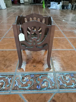 Elegante macetero de madera con un diseño decorativo. 260 x 260 x 400 - Patas curvas para un estilo clásico. - Detalles calados en los laterales.