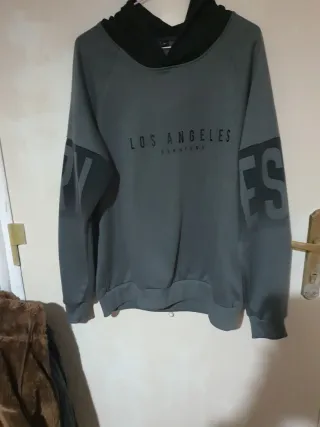 Sudadera con capucha de color gris y talla L. - Diseño con texto LOS ANGELES DOWNTOWN en el frontal. - Detalle de letras PY y ES en las mangas. - Capucha con cordones.