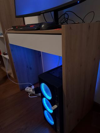 Escritorio infantil completamente nuevo, sin usar. - Diseño moderno y funcional. - Acabado en blanco y madera clara.
