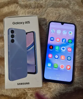 En Buen Estado y Funcionamiento deteriodo del uso Teléfono móvil Samsung Galaxy A15 en color azul. - Pantalla grande. - Cámara triple. - Diseño moderno.