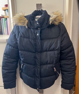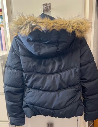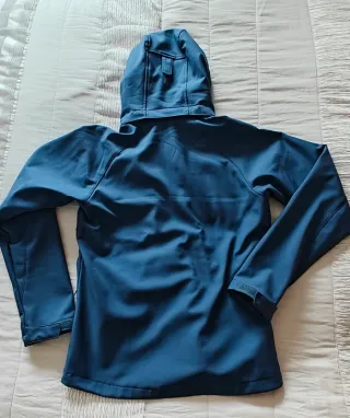 Color azul petróleo. Usado pero en estado magnífico, sin rotos, rasguños o descoloridos. Capucha desmontable. Cazadora chaqueta