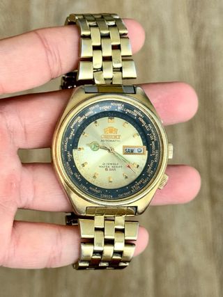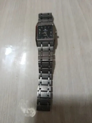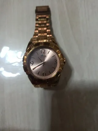 Elegante reloj de pulsera con acabado dorado. - Diseño clásico con esfera clara. - Correa metálica a juego.