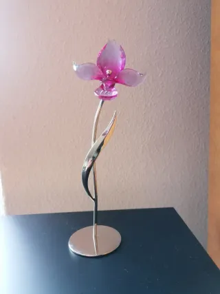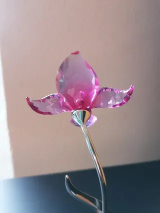 Delicada figura decorativa de una flor de cristal. Modelo Dorora fuchsia rain. Tiene un desperfecto en la punta del pétalo superior que se aprecia en la segunda foto. Por eso tiene un precio muy bajo. Por lo demás está impecable. Entrego con embalaje original y certificado de garantía. Swaroski ofrece un servicio de reparación con coste.