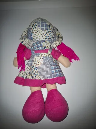 Adorable muñeca de trapo con un diseño divertido y colorido. - Pelo de lana de color rosa vibrante. - Vestido con peto estampado y detalles de cuadros. - Zapatos y gorro a juego. REGALO ALGUNOS ARTICULOS DE MI PERFIL POR COMPRAS DE 10€ MAS JUGUETES , PUZZLES,DISFRACES Y CUENTOS EN MI PERFIL