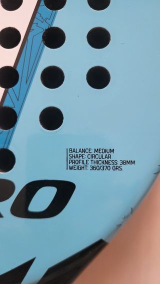 Pala de pádel Vairo Across Blue, ideal para jugadores que buscan control y potencia. Ganada en sorteo, está nueva. - Balance medio. - Forma circular. - Grosor del perfil: 36 mm. - Peso: 360/370 gramos. - Absorción Pro-Grip. - Frame Flex Zone. - Dual Geometric Frame.