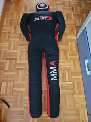 Muñeco de práctica para artes marciales. - Diseño en color negro y rojo. - Logo de BLIST en el torso. - Inscripción MMA en una pierna. - Viene Relleno. - 1.70m aprox.