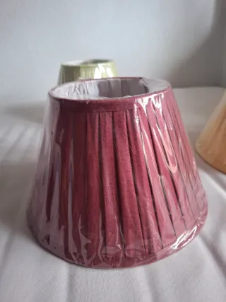 Campana para lámpara de tela con un diseño plisado. Hay de color rojo oscuro, amarillo y verde suave. Diametro inferior 25cm y superior 14cm Se hace oferta si se compran varias