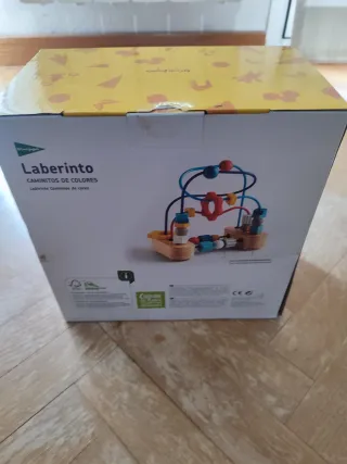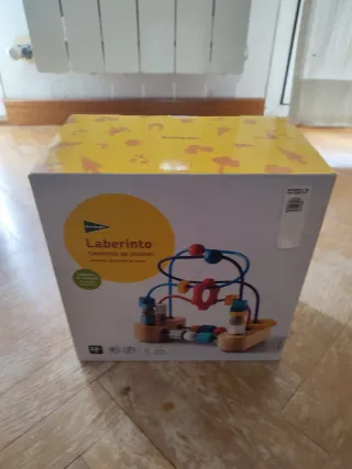 Juguete de madera con cuentas de colores para bebés. - Laberinto de alambre con cuentas. - Base de madera. - Diseñado para el desarrollo de la motricidad fina.