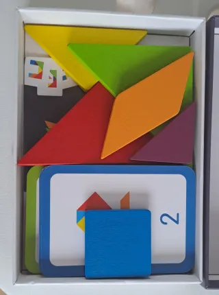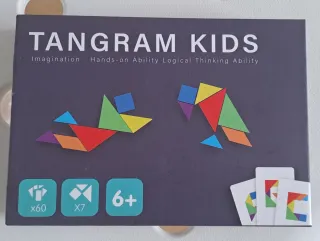 Juego de lógica Tangram Kids para niños a partir de 6 años. Fomenta la imaginación y la habilidad. - Incluye 60 piezas de tangram. - Contiene 7 tarjetas de modelos. - Diseñado para el desarrollo del pensamiento lógico.