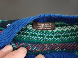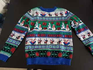 Jersey de punto con temática navideña para niño. Presenta un diseño colorido y divertido con motivos festivos. Puesto solo un dia. - Estampado de Papá Noel, renos y árboles de Navidad. - Frases Merry Christmas y HO HO HO integradas en el diseño. - Cuello redondo y manga larga. - Puños y bajo elásticos.