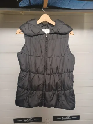 Chaleco negro de vestir, perfecto para añadir un toque elegante a tu atuendo. - Diseño acolchado. - Cuello alto. - Cierre de cremallera frontal. Talla 40