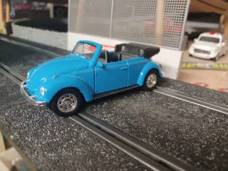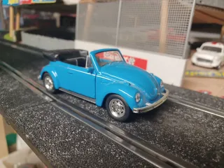 Este coche miniatura es un modelo descapotable de color azul. Escala entre 1/32 y 1/43 de la marca welly - Diseño clásico. - Detalles cromados. Expuesto solo en vitrina