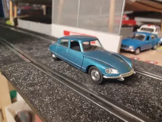 Réplica de coche a escala entre 1/32 y 1/43 en un llamativo color azul metálico. De la marca welly expuesto solo en vitrina - Diseño clásico. - Detalles cromados en parachoques y faros.