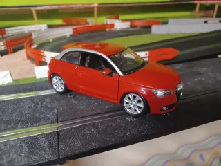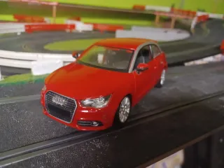 Réplica detallada de un coche Audi A1 escala 1/24 en color rojo de la marca burago. Expuesto solo en vitrina - Diseño deportivo. - Llantas plateadas. - Retrovisores detallados. -ruedas delanteras direccionables
