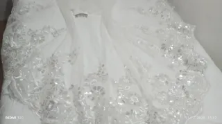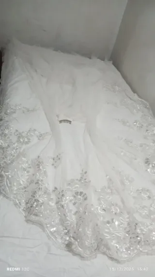 Elegante velo de novia de 3 metros de largo, adornado con pedrería plateada. - Diseño con detalles de pedrería. - Longitud de 3 metros.