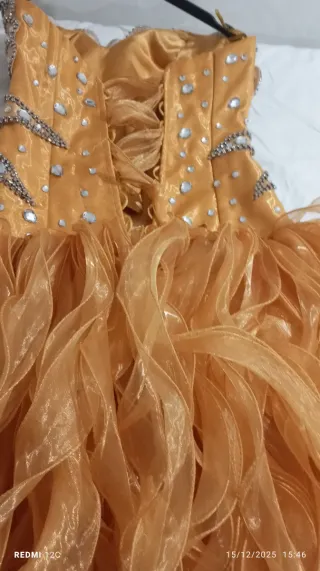 Precioso corpiño con detalles de pedrería. - Diseño con pedrería en tonos dorados y plateados. - Cierre de cordones en la espalda. - Adornos brillantes en el escote y laterales.