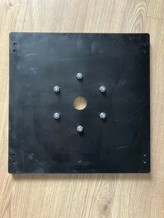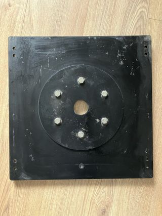 Base giratoria metálica para asiento de furgoneta Opel, Nissan, Primastar. Son dos bases, se envían por separado. - Color negro. - Diseño cuadrado con plato circular central. - Incluye tornillería para sujeción.