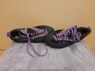 Zapatillas de escalada en color morado y negro. Perfectas para tus sesiones de rocódromo o vías. - Cierre con cordones. - Suela de goma. - Detalle de lengüeta en el talón.