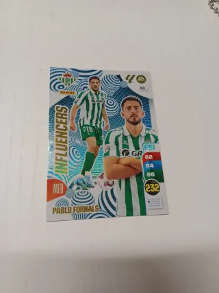 Coleccionable de fútbol de Pablo Fornals, edición Influencers. - Número de carta: 419 - Jugador: Pablo Fornals - Serie: Influencers - Puntuación total: 232 - Estadísticas: 62, 84, 86