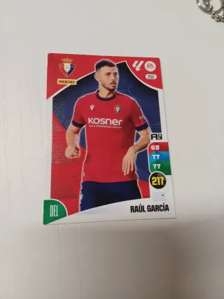 Cromo de fútbol de Raúl García, número 217. - Incluye estadísticas de juego. - Diseño oficial de Panini y EA Sports.