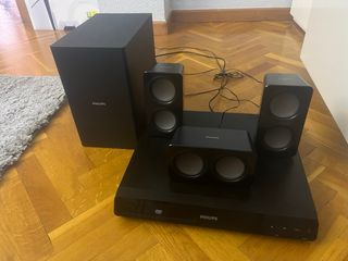 Sistema de cine en casa Philips con sonido envolvente 5.1 y potencia de 300W RMS. - Potencia de 300W RMS para un gran sonido. - Conectividad HDMI para películas en alta definición. - Reproduce DVD, VCD, CD y dispositivos USB. - Diseño elegante en color negro. Solamente venta en persona