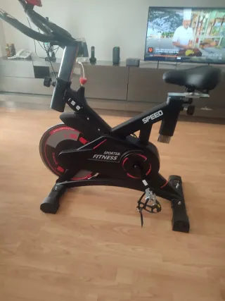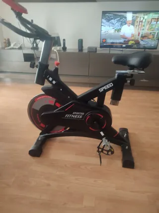 Bicicleta estática ISE SPEED en color negro y detalles rojos. - Diseño deportivo. - Asiento ajustable. - Pedales con agarre. - Estructura robusta.