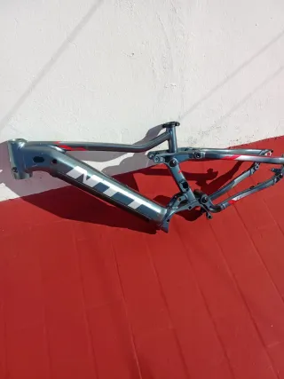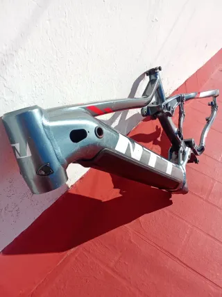 Cuadro de bicicleta eléctrica NTT de 29 pulgadas. Diseño moderno y robusto. Talla m - Color gris metalizado con detalles en rojo y blanco. - Preparado para bicicletas eléctricas. Eje trasero super boost. Dirección cónica. (Regalo una) Doy todo lo que sale en la foto.