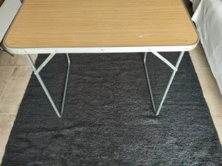 Mesa plegable de camping de la marca Quechua, diseñada para 4 personas. Es práctica y fácil de transportar. - Tablero con acabado en melamina. - Estructura metálica resistente. - Bordes redondeados.