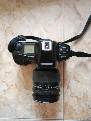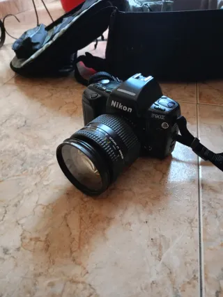 Cámara Nikon F90X analógica (35 mm) con objetivo Nikon AF Nikkor 28–200 mm, mochila Samsonite para cámara y accesorios (parasol, tapas, etc.). No soy experto. El compartimento de las pilas está abierto y con óxido, por lo que no puedo garantizar que encienda. Se vende para revisar, reparar o para piezas. Incluyo una foto hecha con la propia cámara para ver el resultado (la última imagen está hecha con el móvil). La mochila está en buen estado y es específica para fotografía. Se vende el lote completo. Se puede ver sin compromiso. Más fotos o info por mensaje.