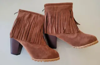 Botines marrones de ante con diseño de flecos, tacón cuadrado. Están nuevos, nunca usados. Número 38