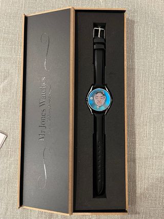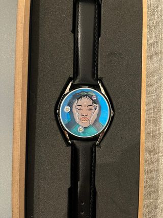 Reloj de edición limitada de Mr Jones Watches con un diseño artístico único en la esfera. Valorado en 200€. - Correa de cuero negra. - Esfera con ilustración detallada. - Las agujas son los peces, que giran alrededor de la chica marcando la hora. - Precisa de cambiar pila.