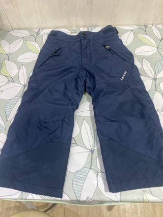Pantalón de esquí de color azul marino. - Talla 4 años/ 109cms -Cintura ajustable con velcro. - Cierre de cremallera y botones. - Bolsillos delanteros con cremallera. - Logo de la marca en la pernera. -De un dia de uso.