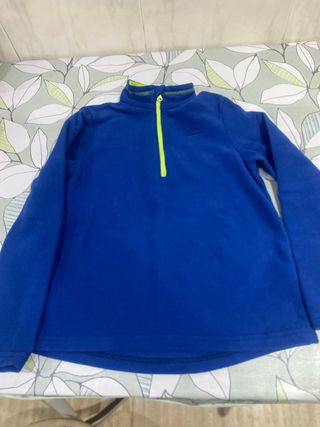 Polar para niño de color azul, ideal para mantener el calor. - Cuello alto con cremallera. - Detalle en color verde lima en el cuello y la cremallera. - Logo de la marca en el pecho.