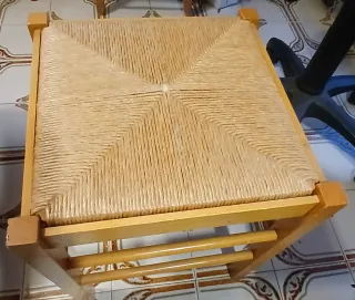 Taburete madera y mimbre con base extraíble